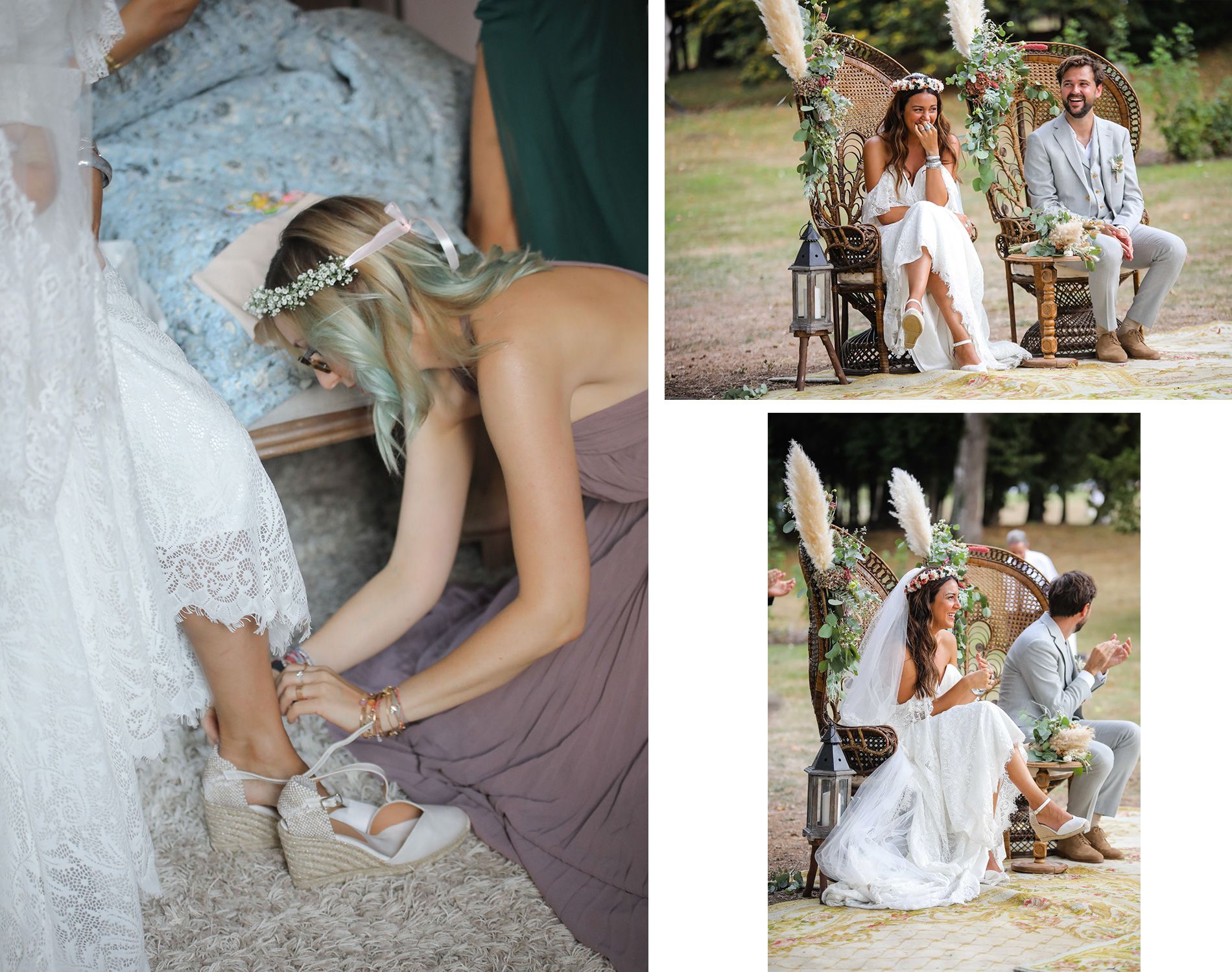 Trouver des chaussures bohèmes, ce n’est pas si évident que ça. La seule chose que je savais, c’est que je voulais des chaussures confortables, abordables en terme de prix et pas de talons aiguilles. Je ne voulais pas investir dans les chaussures proposées dans les boutiques officielles de mariage car personnellement je n’aime pas du tout le style et aucune paire n’aurait pu aller avec ma robe. De plus, je ne voulais pas mettre 500€ dans une paire que j’allais peut être mettre qu’une seule fois.