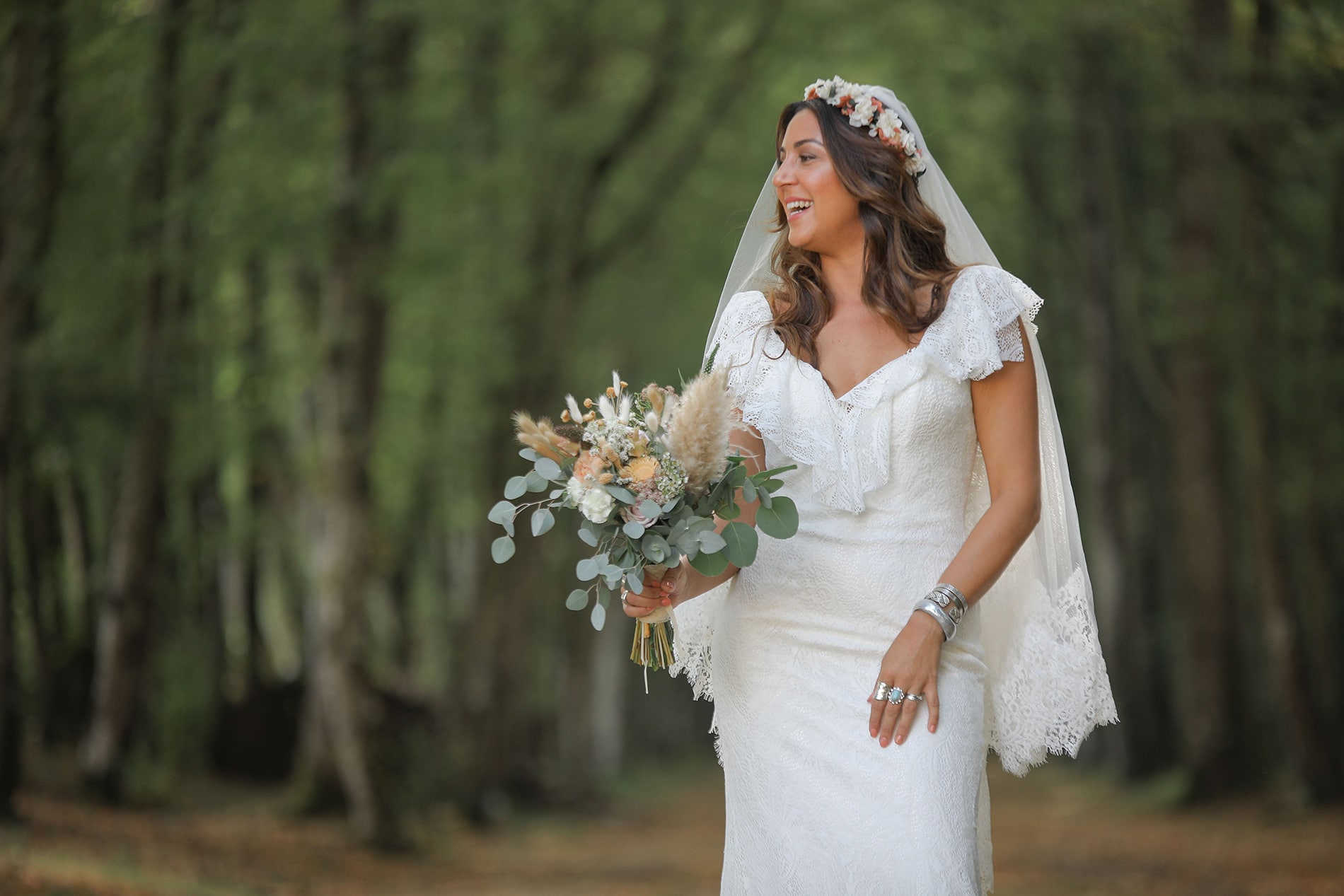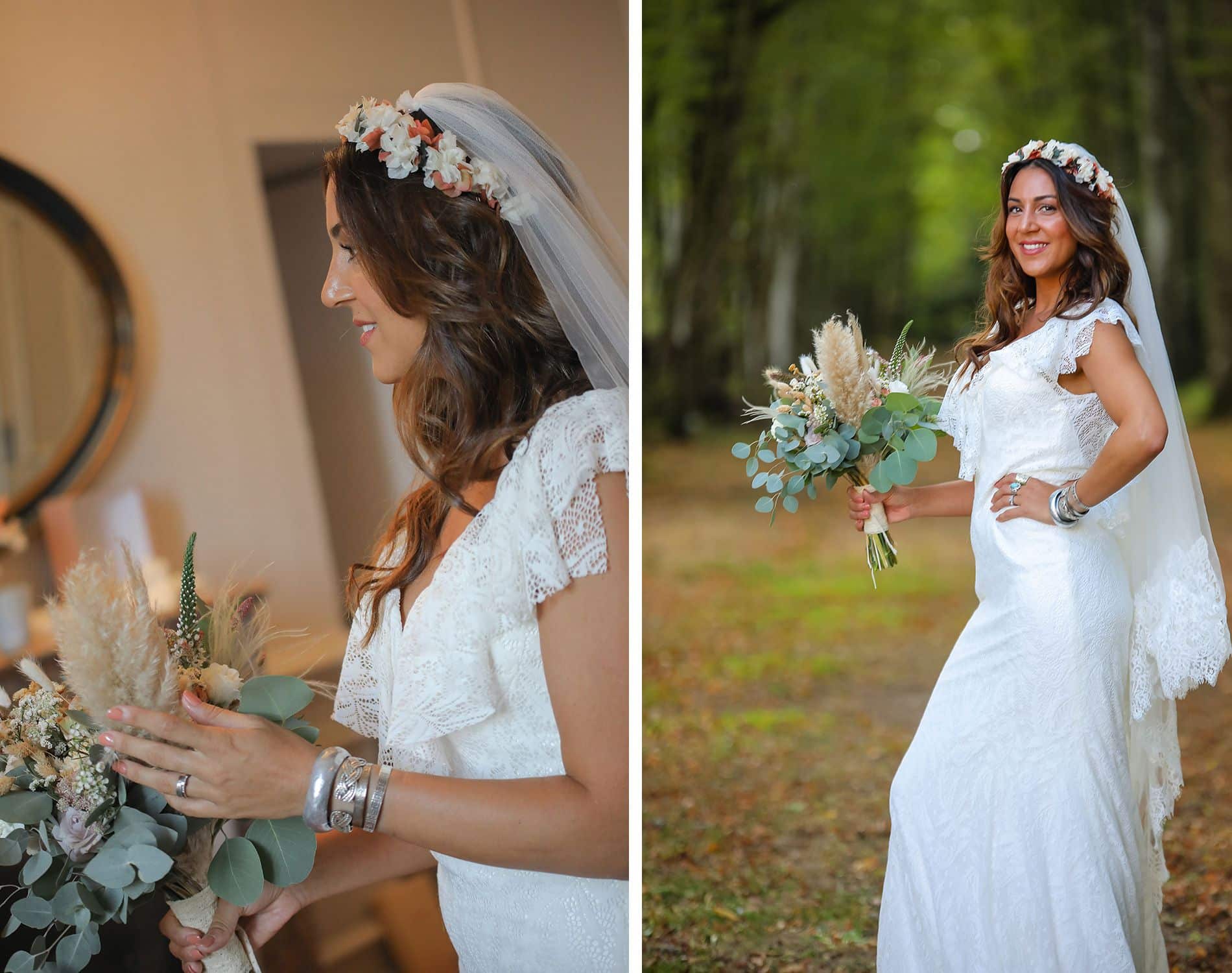J’ai choisi d’agrémenter ma coiffure d’une jolie couronne de fleurs bohèmes. A la base, je voulais simplement une couronne de fleurs séchées avec quelques fleurs fraîches mais après avoir discuté avec ma fleuriste, il s’avère qu’une couronne en fleurs séchées n’est pas forcément idéale pour un mariage car ça tient moins bien sur les cheveux. Au bout de quelques heures, elle peut s’effriter et perdre son aspect. Préférez la pour une séance photo ou un anniversaire. J’ai commencé mes recherches sur pinterest et vous invite à découvrir ma sélection.