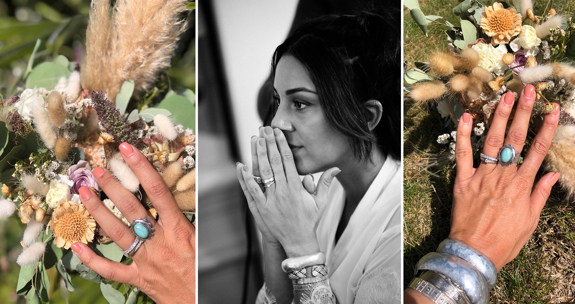 Je ne souhaitais pas porter de sac sur moi donc j’avais confié à ma sœur une grande pochette bohème naturelle faite en feuille de palme pour y mettre mon maquillage et mon portable. La aussi, jouez à fond le côté bohème avec cette accessoire oversize. J’en avais trouvé quelques unes de sympas en raphia et en paille sur le site de Etsy et de Asos.