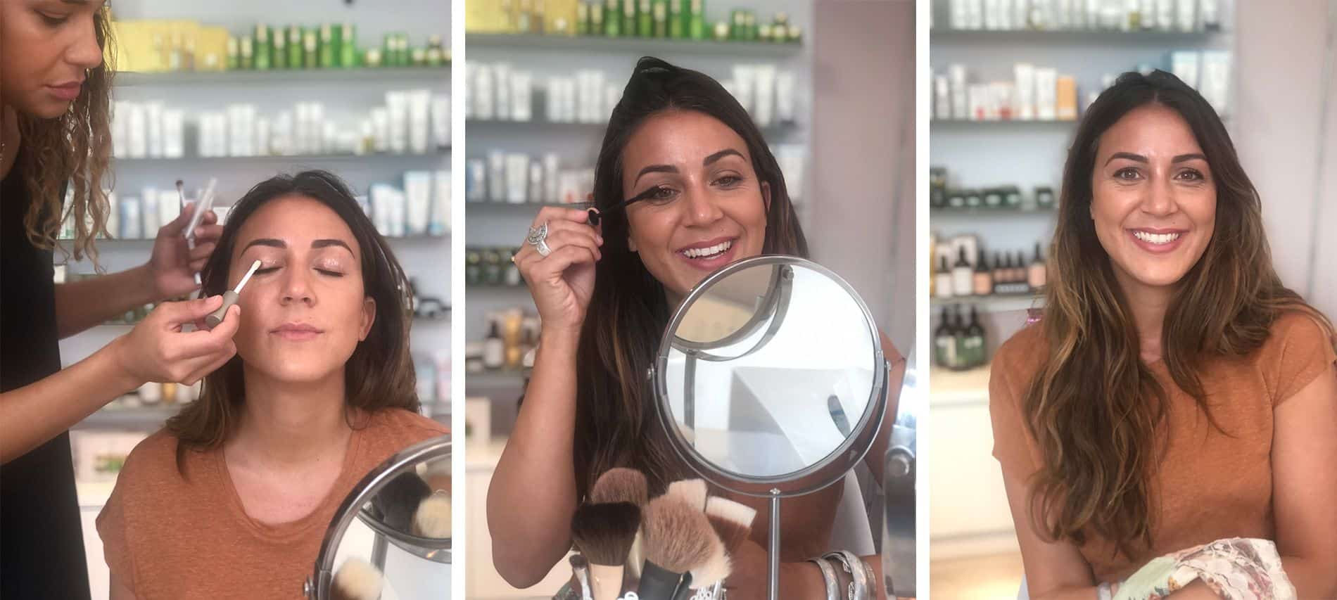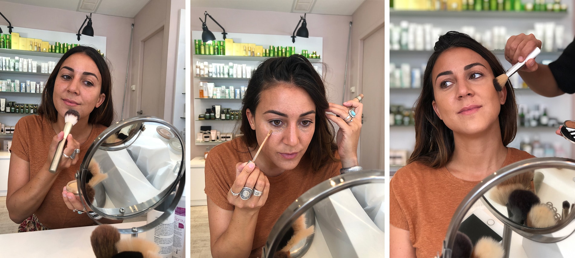 Une amie m’avait parlé du maquillage green de chez Oh My Cream. Cette boutique en ligne et physique du 18ème arrondissement de Paris est un concept-store qui sélectionne les marques de beauté clean, efficaces et les plus pointues. J’y achète quelques cosmétiques de jour et nuit et je les adore. J’ai pris rendez-vous dans la boutique pour un diagnostic de peau et un essai maquillage. Le feeling est de suite passé avec Laure, une jeune fille douce et à l’écoute. Les teintes proposées correspondaient parfaitement à ce que je recherchais à savoir des vieux roses, des terracottas, des marrons chauds, des kakis… Ce qui est bien avec Oh my Cream, c’est que les filles prennent le temps de vous expliquer couche après couche ce que vous allez de voir mettre et vous devez vous exercer devant le miroir.