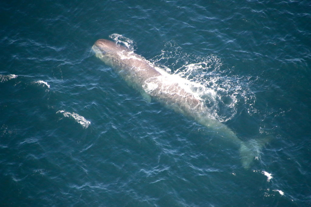 Puis soudain, le cétacé fait son apparition, dans une eau agitée et noire! 10 minutes maximum de bonheur à le survoler dans tous les sens, à basse altitude!